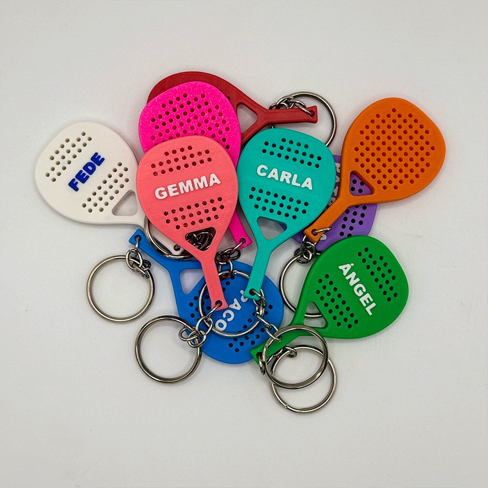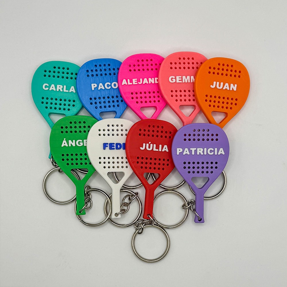 Con el llavero de pádel con tu nombre personalizado llevas contigo tu identidad: tu nombre, tus colores y tu estilo, siempre visibles en tu mochila, llaves o bolsa de partido. Un accesorio único que combina utilidad con un toque emocional.