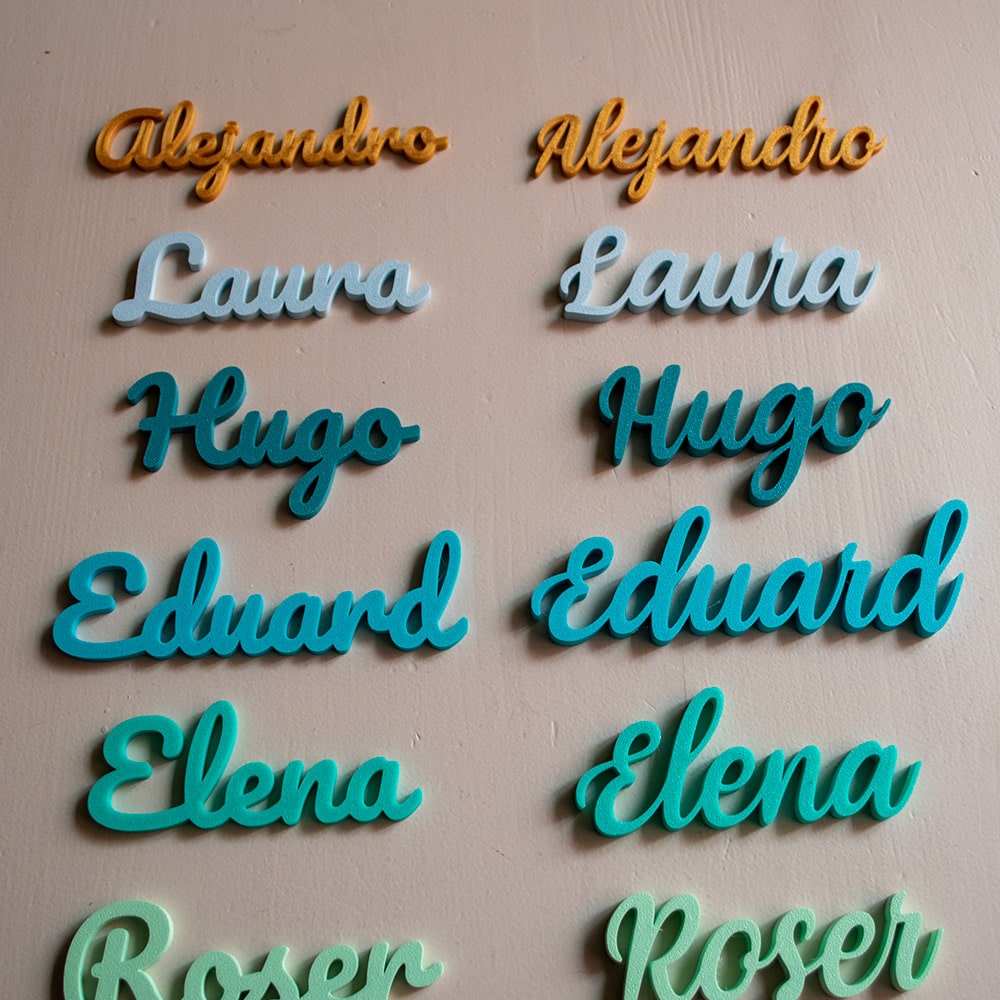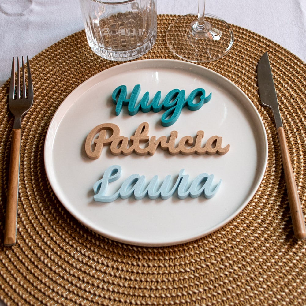 Dale un toque único a tu evento con nuestros marcasitios personalizados en 3D. Hechos a medida con impresión 3D de alta calidad, son ideales para bodas, bautizos, comuniones o celebraciones especiales.